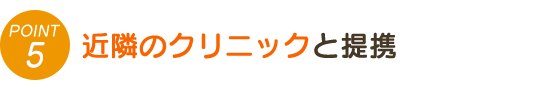 • 当院は近隣のクリニックと提携をすることで、より正確な症状の原因究明や根本改善に向けた施術を行えるようにしております。