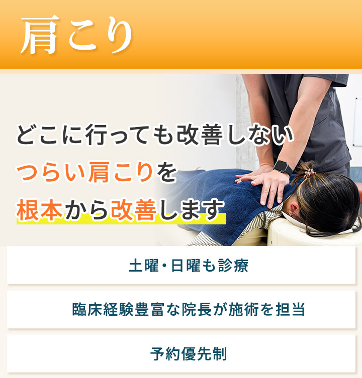 肩こりでお悩みの場合は、まず当院までご相談ください。
